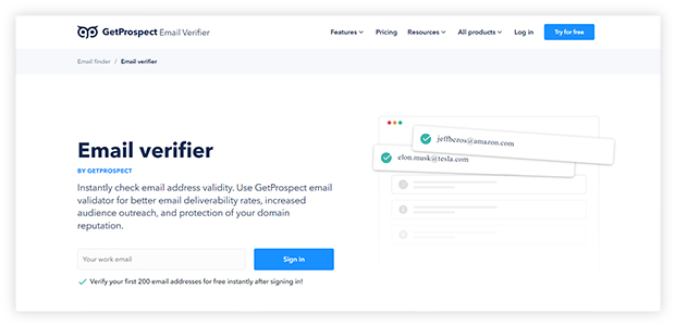 Do you want to get better email deliverability, increase your audience reach, and protect your domain’s reputation? GetProspect email verifier is just the tool you need. Expand your customer base with additional information about your prospects and company, such as LinkedIn URLs, locations, job titles, and over 15 other datasets.