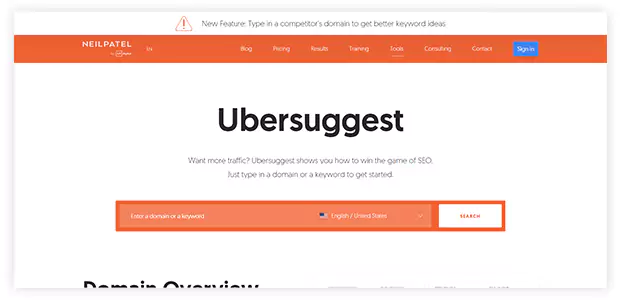 Ubersuggest, a widely recognized free SEO tool developed by Neil Patel, is an invaluable resource for performing competitive analysis. Its comprehensive range of features, from search volumes to identifying competitor rankings’ keywords, domain authority, and backlinks, are extremely helpful. We recommend using multiple keyword and product research tools to make the most informed decision and compare the results.