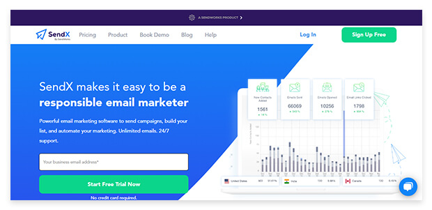 SendX is an email marketing app loaded with several tools for managing your lists. SendX allows you to segment your customers on the basis of their interests. Apart from that you can make use of popup forms, Drag and drop editor, and A/B testing to make your email campaign more compelling.