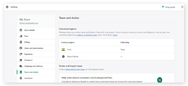 Besides shipping rates, you also need to configure your taxes. Shopify handles tax calculations automatically since it uses a worldwide tax rate. But you still need to research or consult a tax professional to ensure that you are charging and paying the right amount.