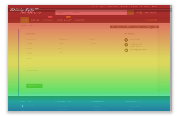 So far, you got to know what is a heatmap, how it works, what scroll maps and clicks maps are. Now, we will discuss how it can be useful for us. Heatmaps give you the detail information of your web page value. It will tell you about the valuable content of your web pages, helps you to know about visitors behavior and also tells you about which area is more profitable for your site. Heat maps are the great tool to know the insight view of your website content value which may help you to redesign or re-construct your websites to increase user engagement and profit.